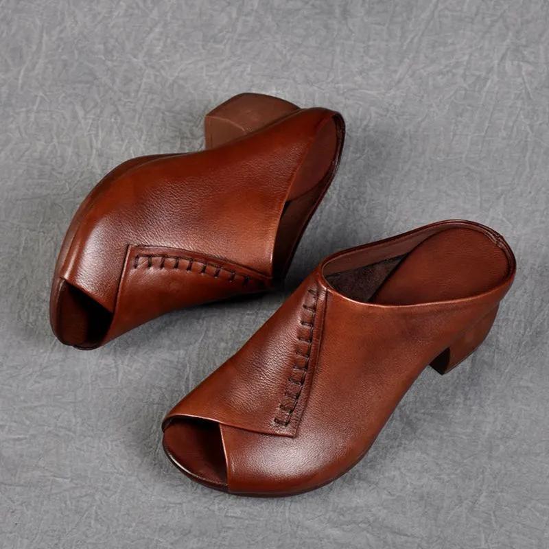 Летние женские мягкие кожаные тапочки на толстом каблуке, удобные универсальные женские сандалии с застежкой «рыбий рот» на среднем каблуке, обувь для мам — купить товар онлайн с бесплатной доставкой по всему миру!