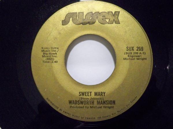 7inch Record WADSWORTH MANSION - Sweet Mary SUX209 Sussex 1970 Canada Rock Used