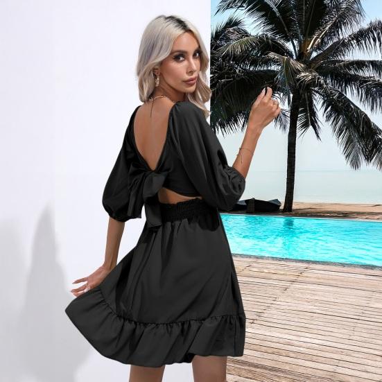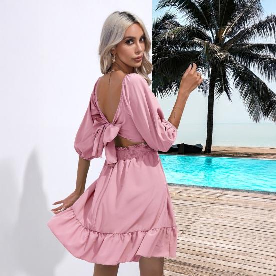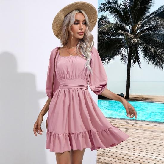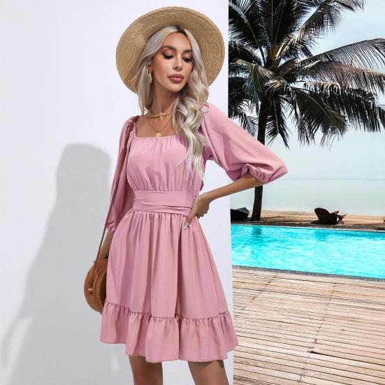 Привлекательный квадратный воротник, приталенный на талии: Почувствуйте уверенность в себе в однотонном платье с квадратным воротником, застегивающимся на талии, которое подчеркивает вашу фигуру, создавая стройнящий силуэт.