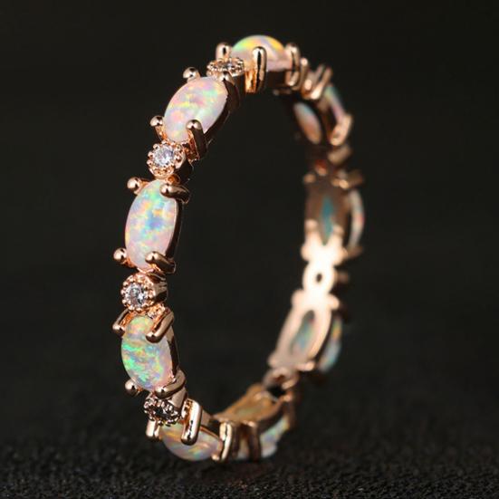 Символ Бесконечной Любви: Ощутите вечную любовь и связь с овальным имитационным опалом, установленным на этом кольце-дорожке.. Постоянно меняющиеся оттенки внутри каждого искусственного опала символизируют элегантность и изящество, делая его глубоким выражением вечной привязанности и сияния.