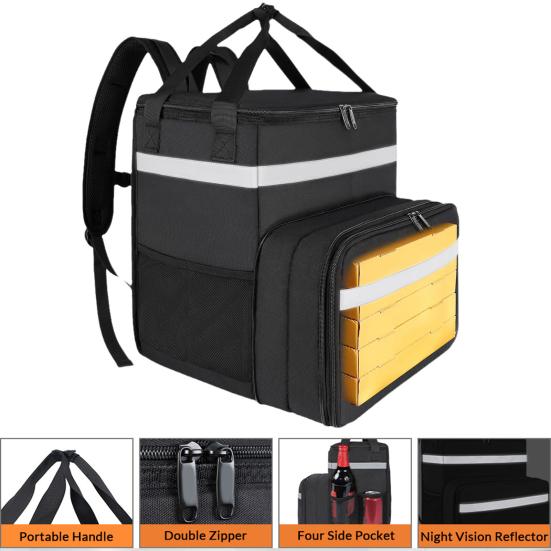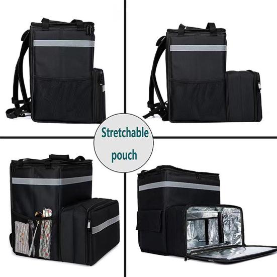 Представляем сумку для доставки еды — вашу лучшую всепогодную систему безопасности для эффективной и безопасной доставки. Оснащенный несколькими светоотражающими полосами, этот бокс обеспечивает видимость на расстоянии до 200 метров даже в сложных условиях, таких как дождь или туман.. Инновационная масштабируемая 3D-конструкция оснащена механизмом бокового расширения, который легко вмещает 14-дюймовую коробку для пиццы и несколько напитков, повышая эффективность доставки на 40 процентов.