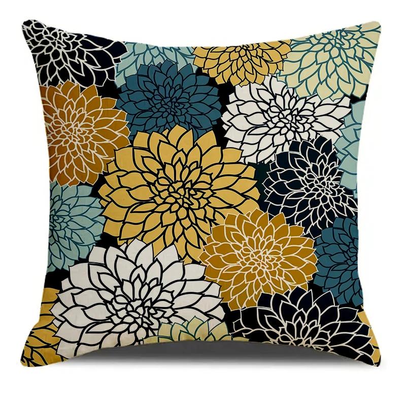 Красочный цветочный желто-красный узорный принт Мягкая квадратная наволочка Смесовая наволочка для подушки Наволочка Гостиная Домашний декор