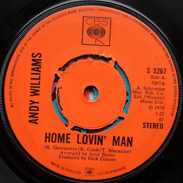 7inch Record ANDY WILLIAMS - Home Lovin' Man S5267 CBS 1970 UK Pop Used