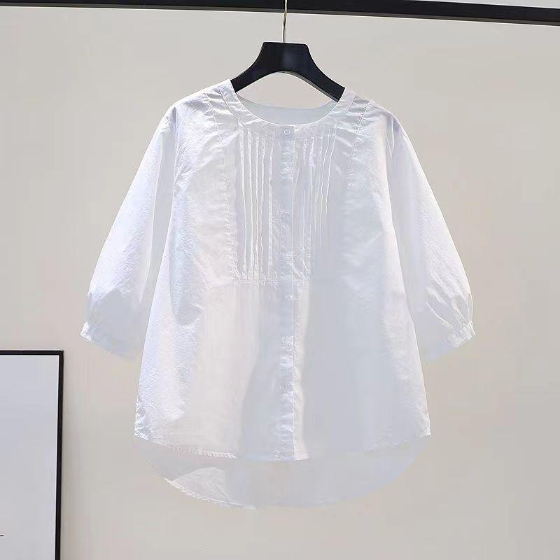 Белая хлопковая рубашка в корейском стиле женская летняя с круглым вырезом повседневная свободного кроя с коротким рукавом — купить товар онлайн с бесплатной доставкой по всему миру!