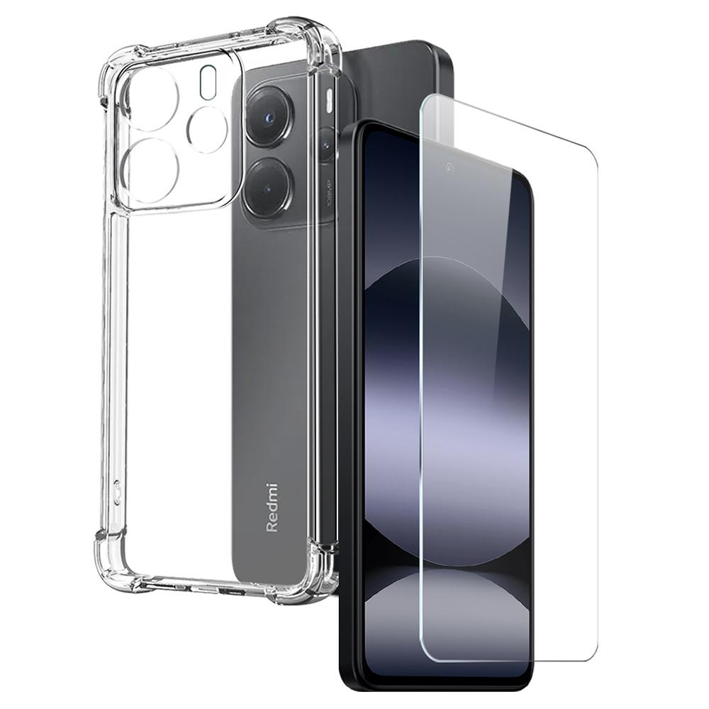 NORTHJO For Xiaomi Redmi Note 14 4G (164.84mm) Clear Phone Case Four Corner Shockproof TPU Cover with Tempered Glass