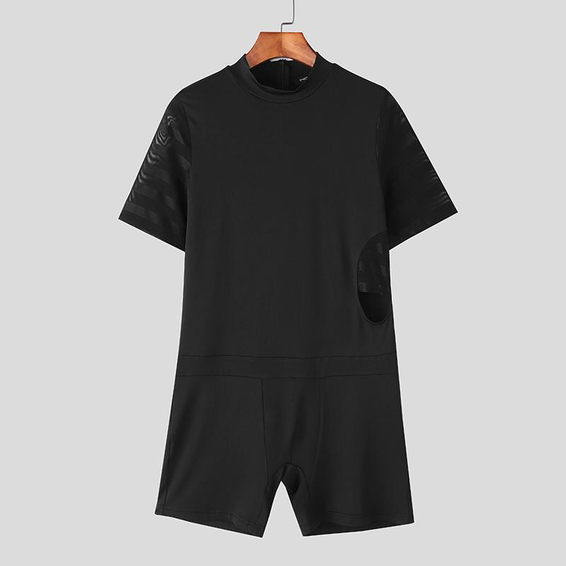INCERUN Мужские комбинезоны с коротким рукавом, сетчатыми вставками, для сна, пижамы, домашняя одежда
