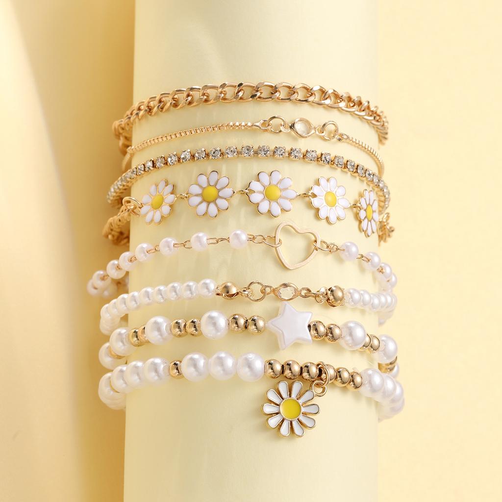 Набор из 5/8 шт. Милый креативный браслет-часы ручной работы с пентаграммой и ромашкой для девочек