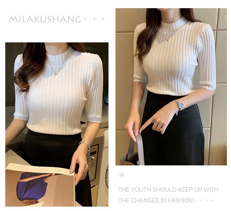 Женский корейский облегающий трикотажный пуловер с рукавом до середины предплечья, весна/осень 2024