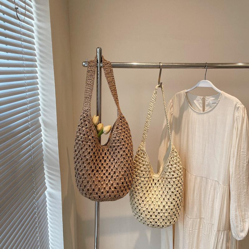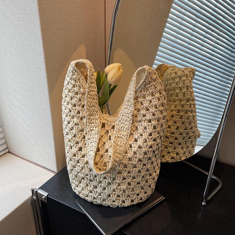 Женская вязаная сумка через плечо, ажурная пляжная сумка, большая вместимость, эстетичная сумка-тоут, женская повседневная сумка