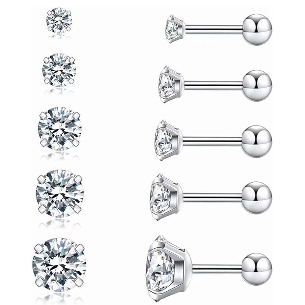 Унисекс серьги-пусеты с цирконием и бриллиантовым шариком на четырех лапках