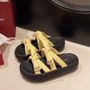 Крутые шлепанцы на толстой подошве для женской уличной обуви 2025 новый летний темперамент модные универсальные шлепанцы с бантом