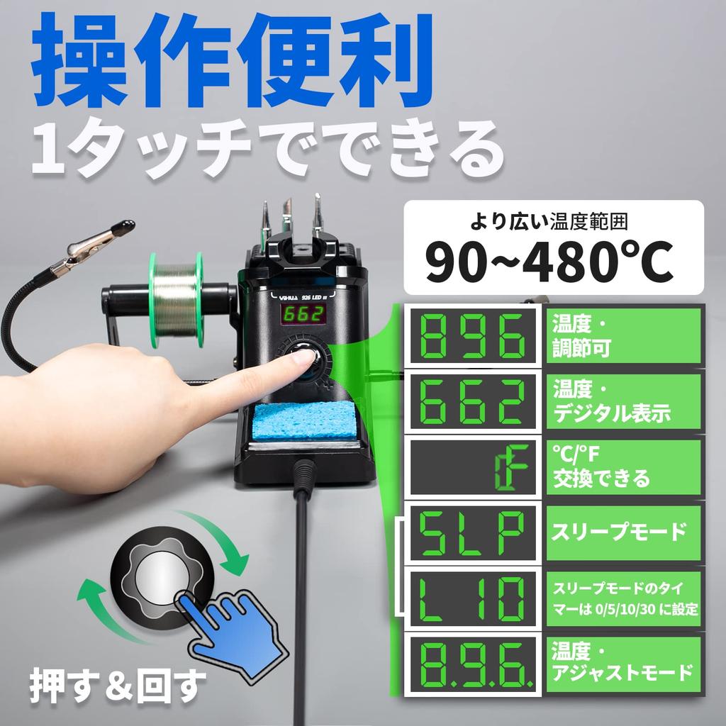 "YIHUA Безопасный и Надежный Выбор" Этот продукт - паяльник, сертифицированный PSE Японии. В комплект входят высококачественные аксессуары и инструменты для обеспечения комфортной работы.. Специальная услуга на Amazon Japan: Гарантия на техническое обслуживание действует в течение одного года с даты покупки.. Мы открыты 365 дней в году, поэтому, если у вас есть какие-либо вопросы, пожалуйста, не стесняйтесь связаться с нами на Amazon.. Спасибо. уведомление: Блок питания можно использовать с 100 В-110 В. В целях безопасности не используйте блок питания с напряжением 200 В-240 В.