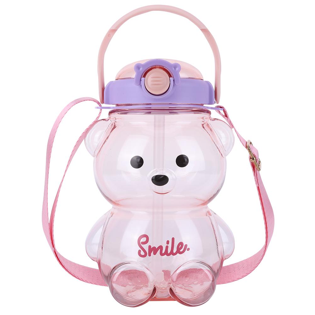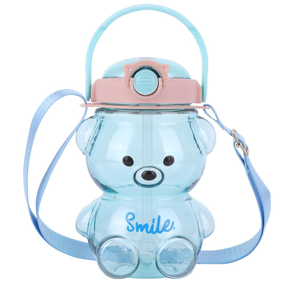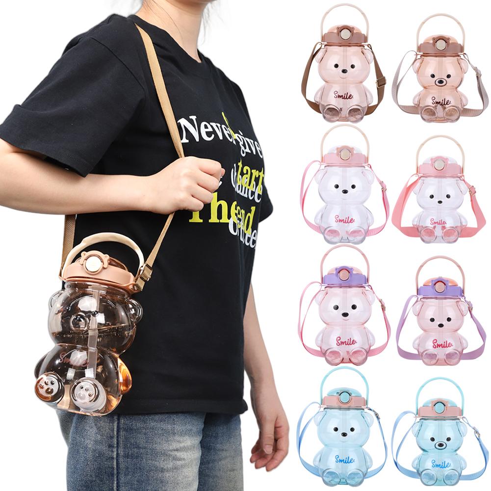 Бутылка для воды 'Мишка' 1000/1400 мл с плечевым ремнем Милая бутылка для питья с мишкой Портативный дорожный стакан с соломинкой для мальчиков и девочек для ежедневного использования