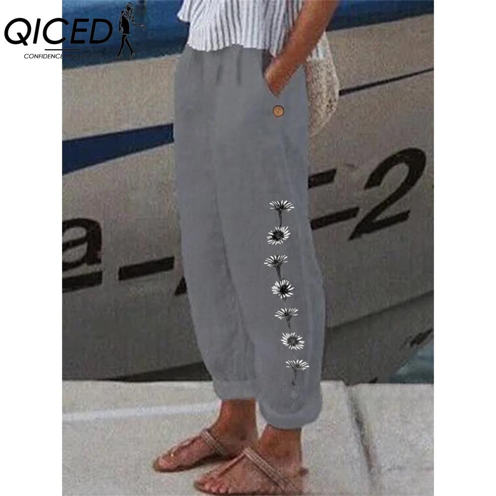 QICED Модные популярные гаремные брюки с цветочным принтом и карманами-цветками, брюки со средней посадкой, уличная одежда