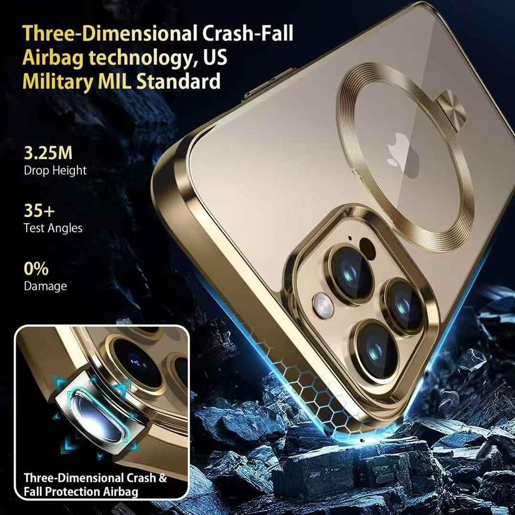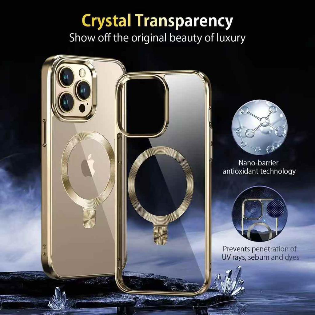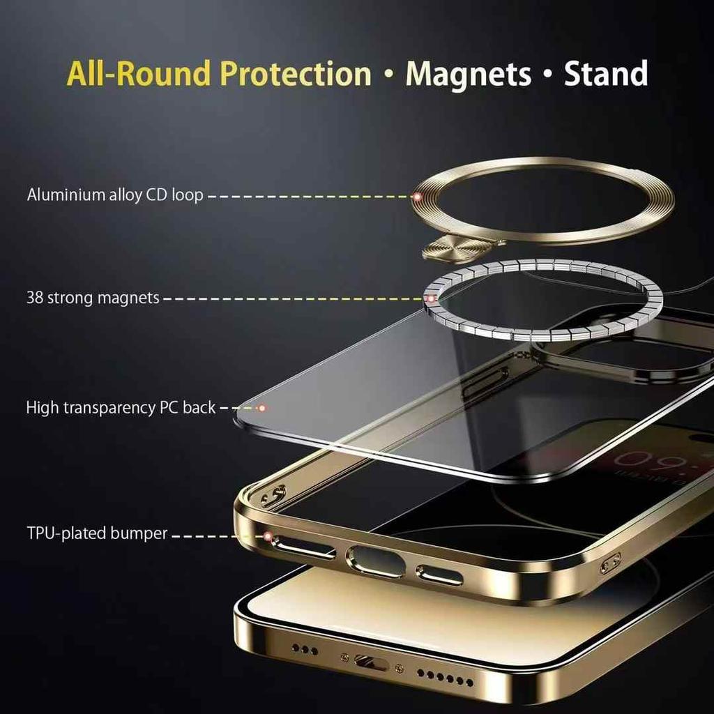 For iPhone 15 Pro Max Magnetic Case Electroplated TPU+PC Kickstand Clear Back Phone Cover