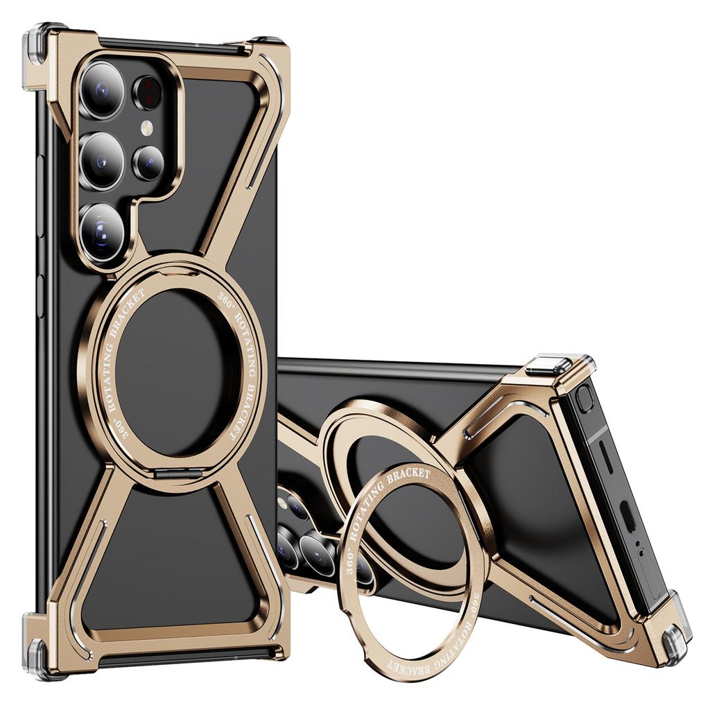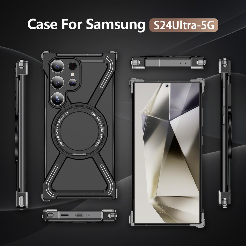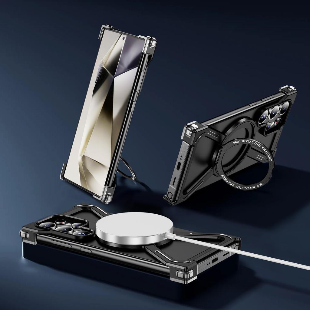 Бамперы для Samsung Galaxy S24 Ultra Бескаркасная металлическая рамка Чехол Совместим с MagSafe Подставка