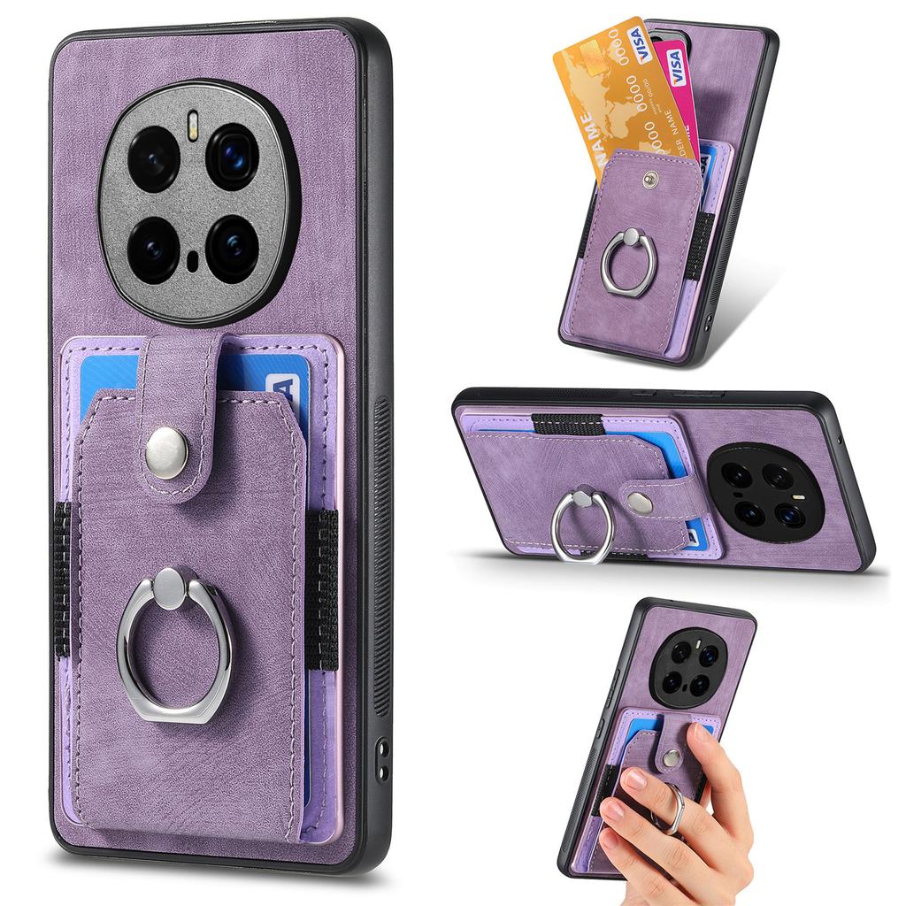 Для телефона Honor Magic7 Pro 5G Кожаная задняя крышка с отделениями для карт и подставкой