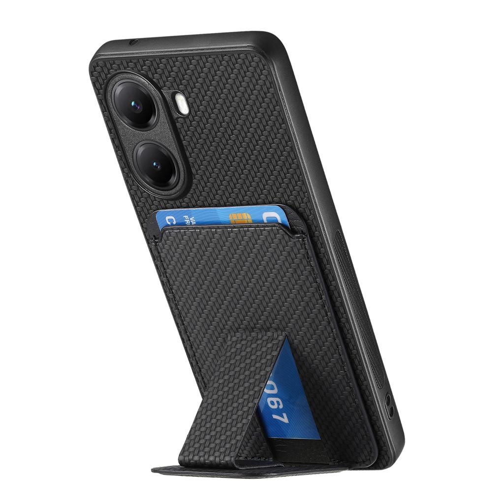 Чехол для Xiaomi Poco X7 Pro 5G/Xiaomi Redmi Turbo 4 5G с держателем для карт, текстура под карбоновое волокно, покрытие из кожи, чехол для телефона из ТПУ — купить товар онлайн с бесплатной доставкой до всему миру!