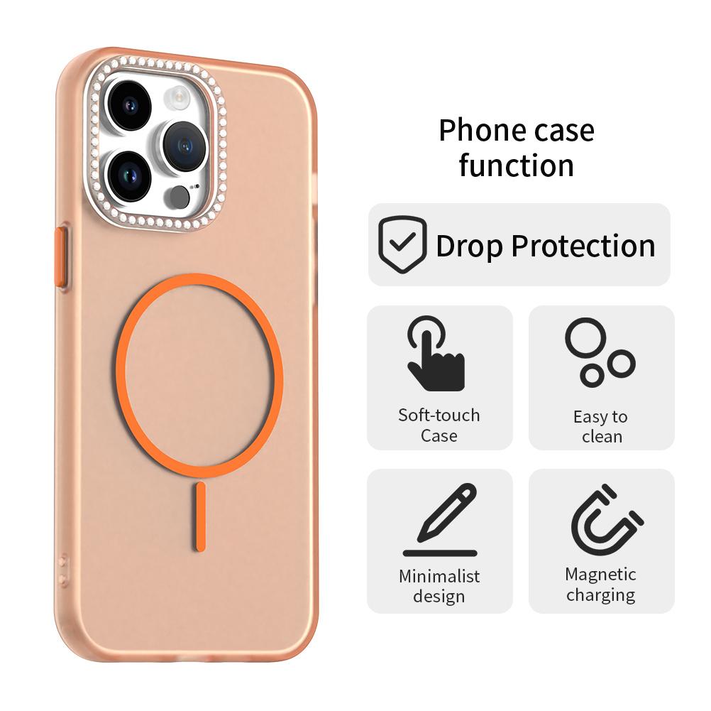 For iPhone 14 Pro Case Compatible with MagSafe TPU+PC+PET Phone Cover Rhinestone Decor Lens Frame