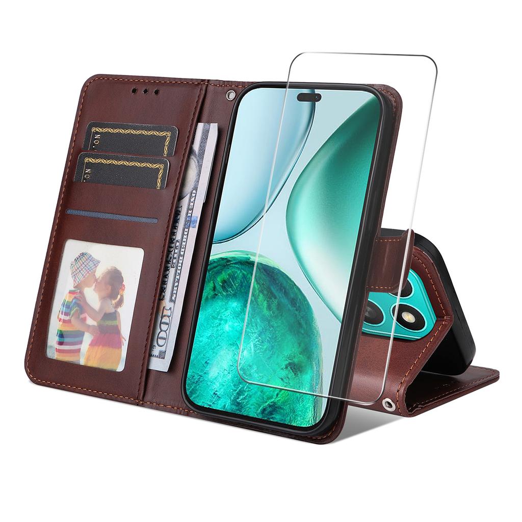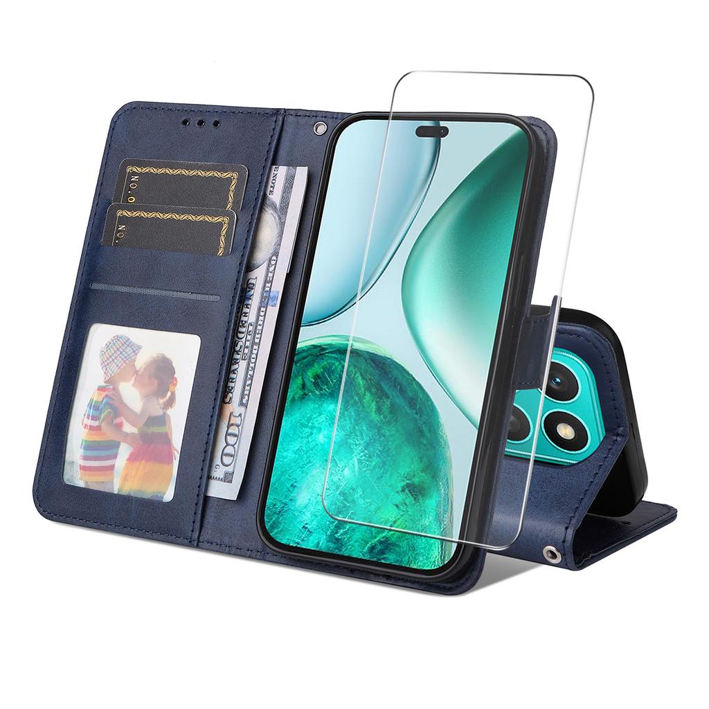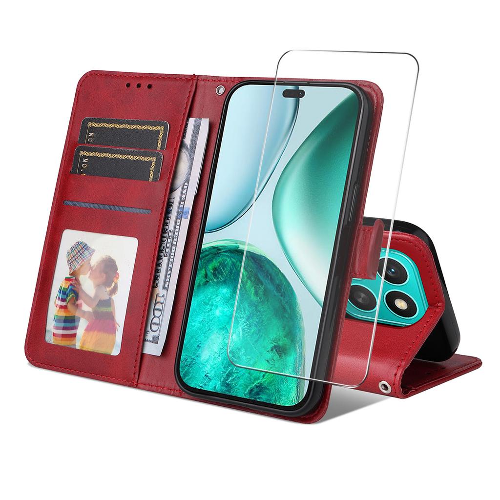 Для Honor X8c 4G Кошелек-чехол из ПУ-кожи ENKAY HAT PRINCE Чехол-подставка для телефона с закаленным стеклом