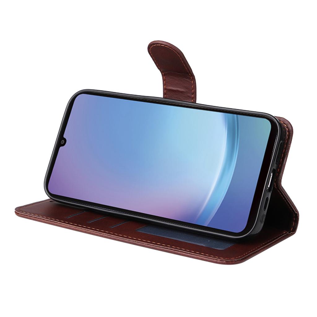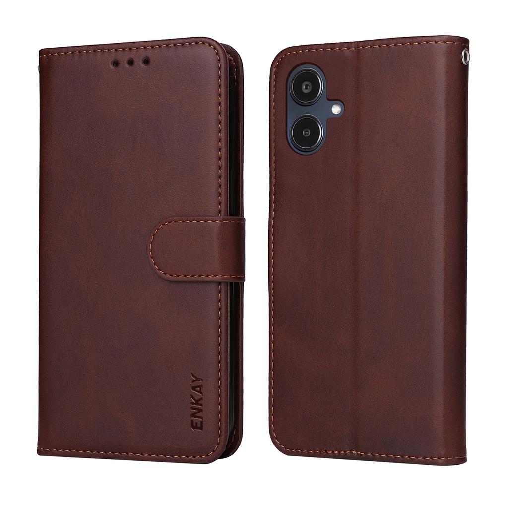 For Samsung Galaxy A25e PU Leather Wallet Case ENKAY HAT PRINCE Phone Stand Cover with Tempered Glass