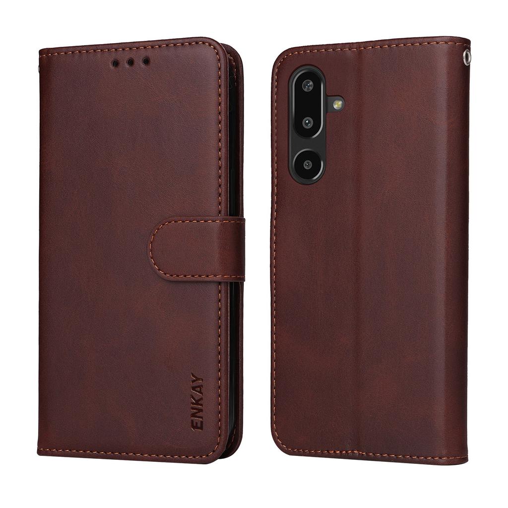 For Samsung Galaxy M16 5G/Galaxy F16 5G PU Leather Wallet Case ENKAY HAT PRINCE Phone Stand Cover with Tempered Glass