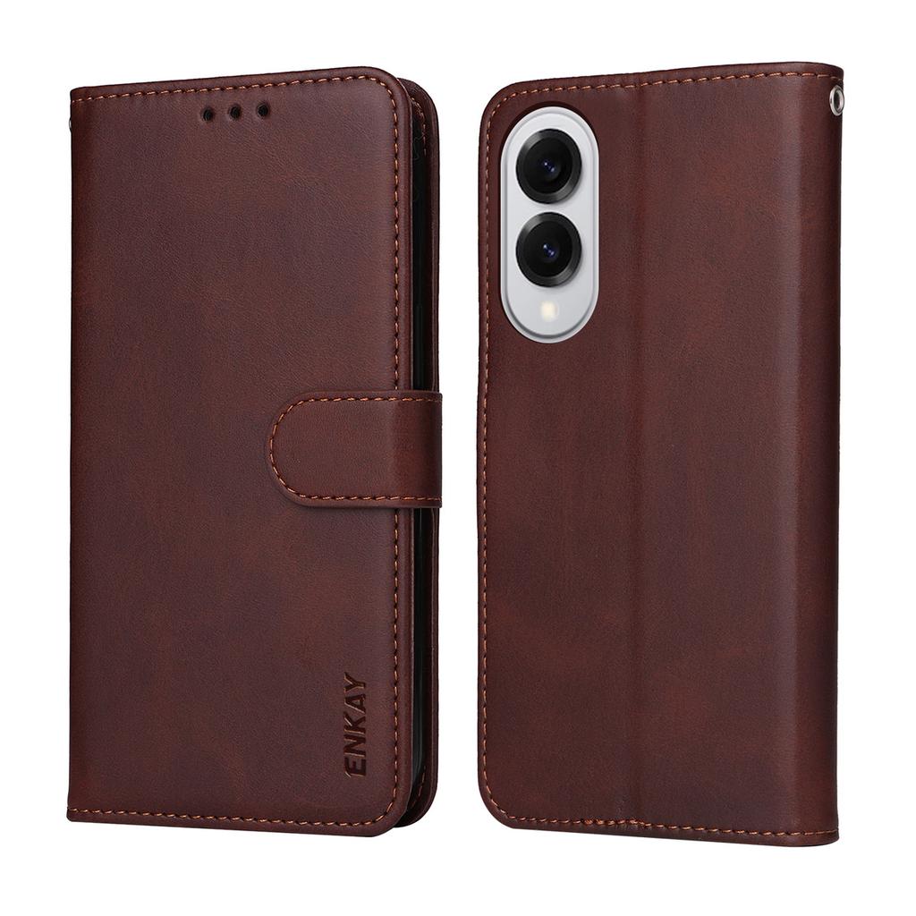 For Samsung Galaxy S25 Edge PU Leather Wallet Case ENKAY HAT PRINCE Phone Stand Cover with Tempered Glass