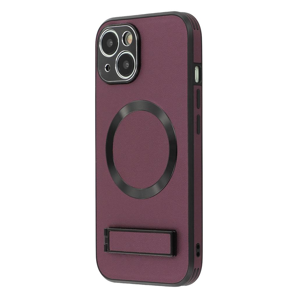Чехол-подставка для iPhone 14 с поддержкой MagSafe PC+TPU+PU Задняя крышка для телефона