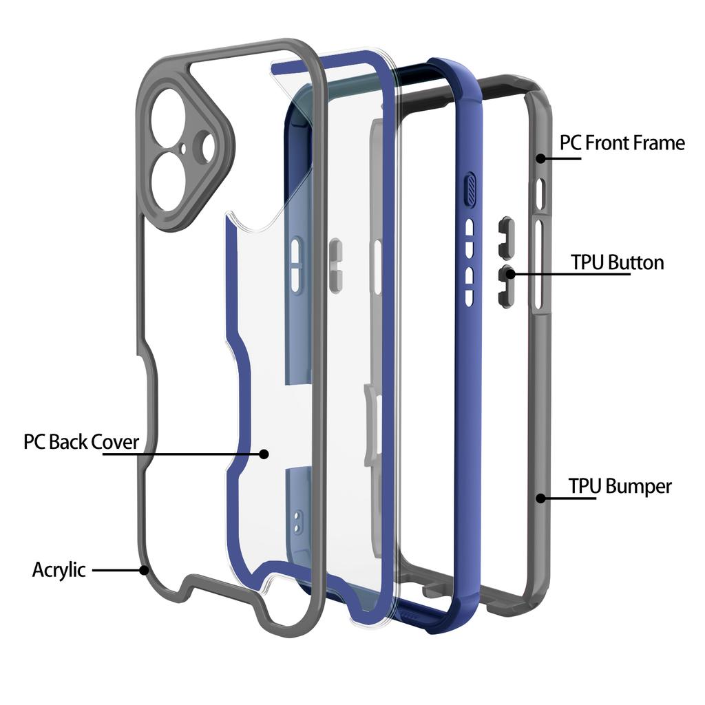 For iPhone 16 Case Detachable 4 in 1 TPU+Acrylic+PC Shockproof Phone Cover