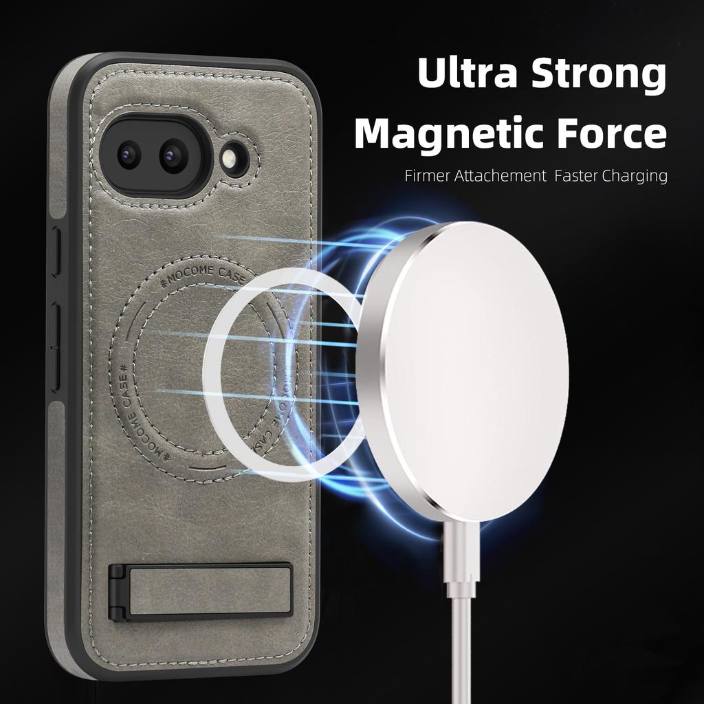 Для чехла Google Pixel 9a, совместимого с MagSafe, с подставкой, кожаная задняя крышка для телефона