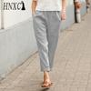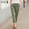 HNXC Женские летние однотонные брюки с двойными карманами, свободные длинные брюки, женские хлопковые льняные брюки
