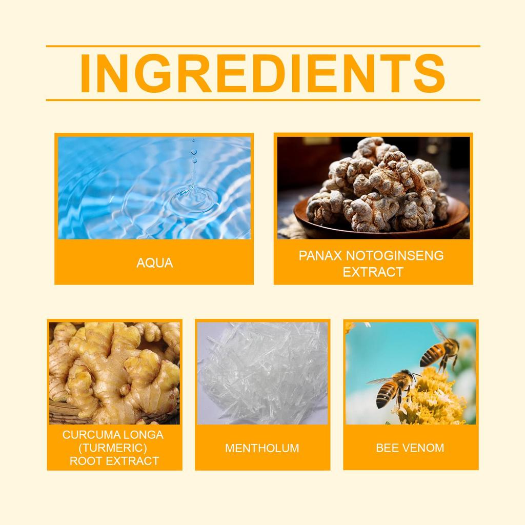 1. пчелиный яд: Стимулирует кровообращение кожи и лимфообращение, помогая похудеть и сформировать ваше тело.