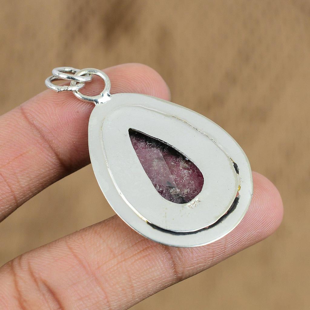 Подвеска из натурального родонита, ручная работа, серебро 925 пробы, индийские украшения