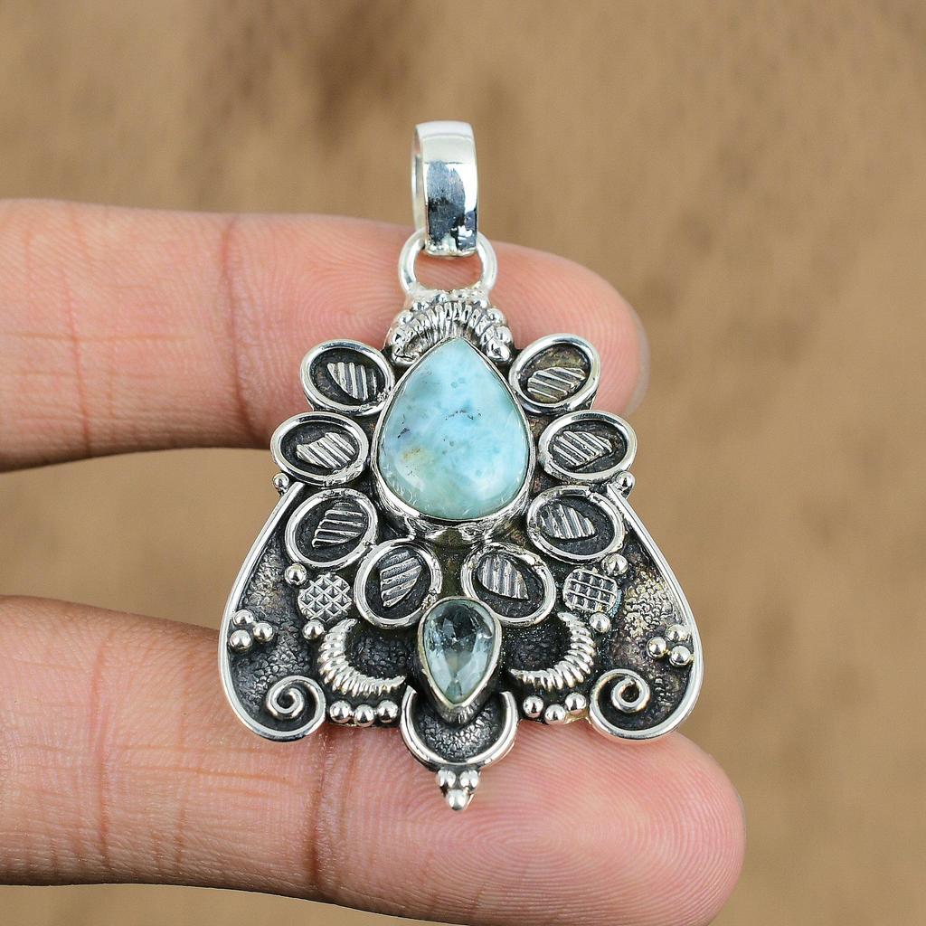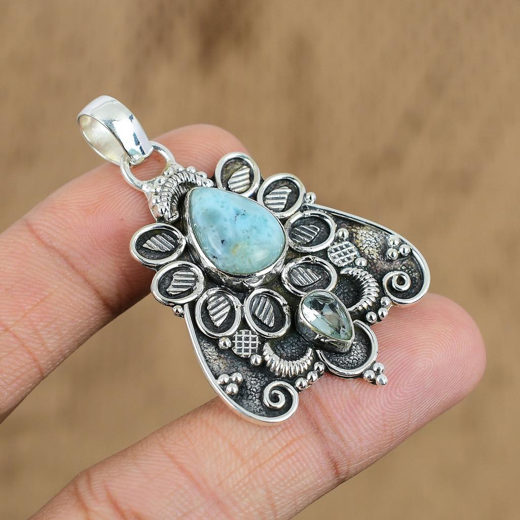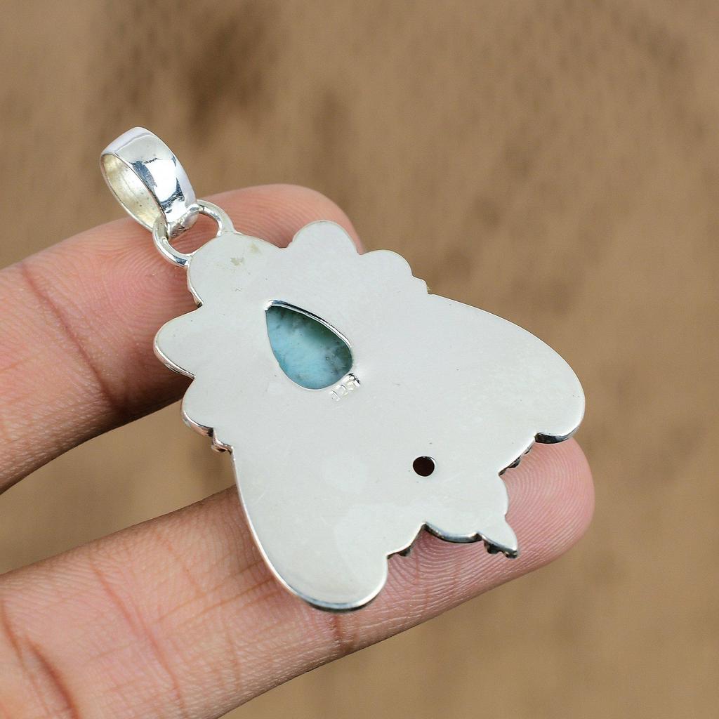 Натуральный Ларимар Подвеска с Драгоценным Камнем Синий Серебро 925 пробы Индийские Украшения