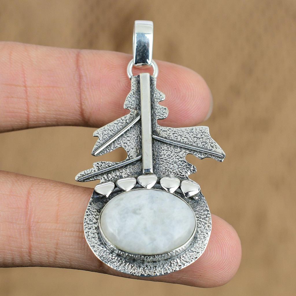 Свадебный подарок для нее Подвеска из серебра 925 пробы с натуральным радужным лунным камнем
