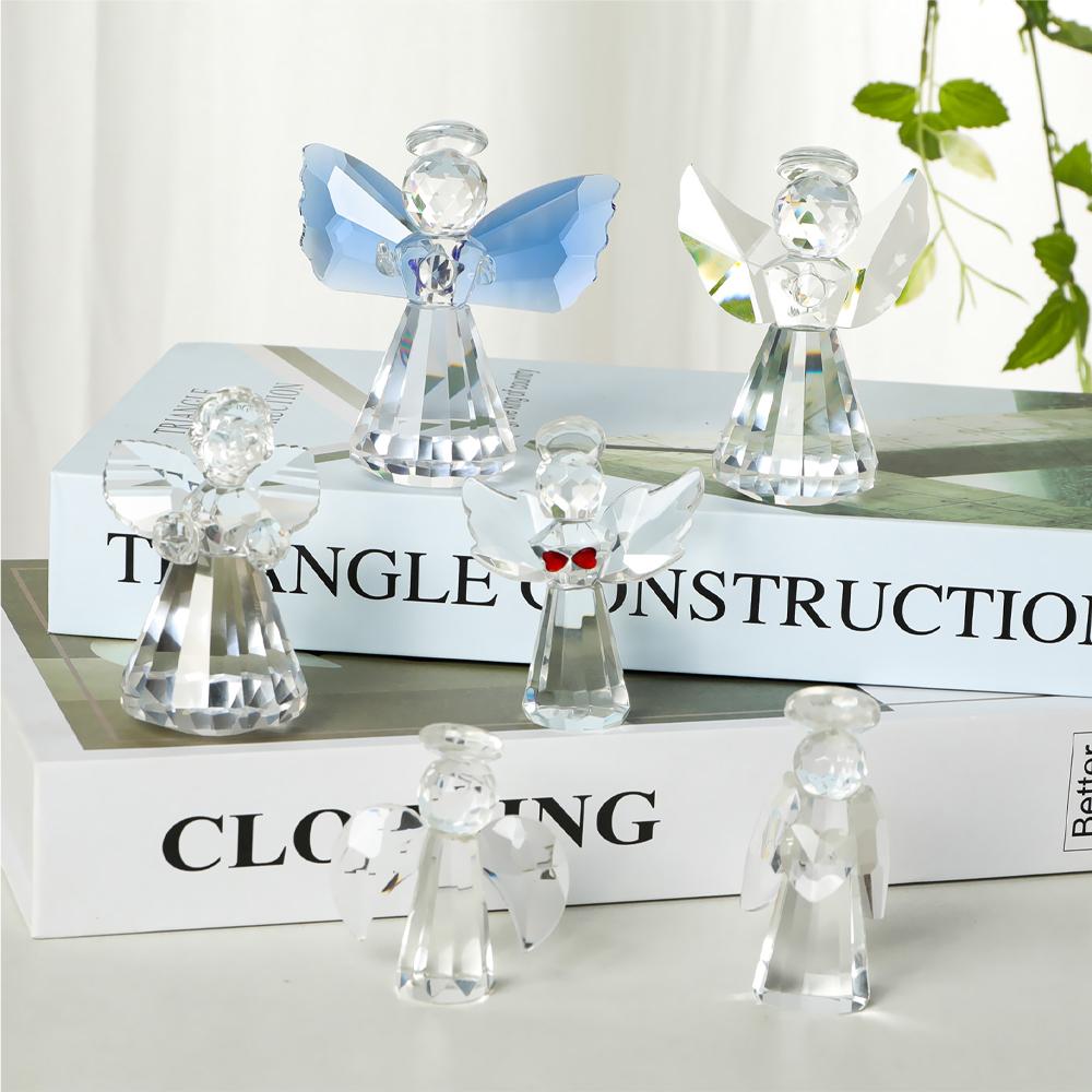 Хрустальная фигурка ангела-хранителя, коллекционный пресс-папье, стеклянный ангел с голубыми крыльями, статуэтка-украшение, свадебный подарок