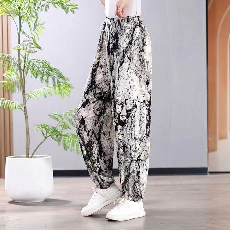 Летние брюки харен тонкие брюки-фонарики повседневные брюки повседневные женские брюки модные изо льда свободные девять десятых