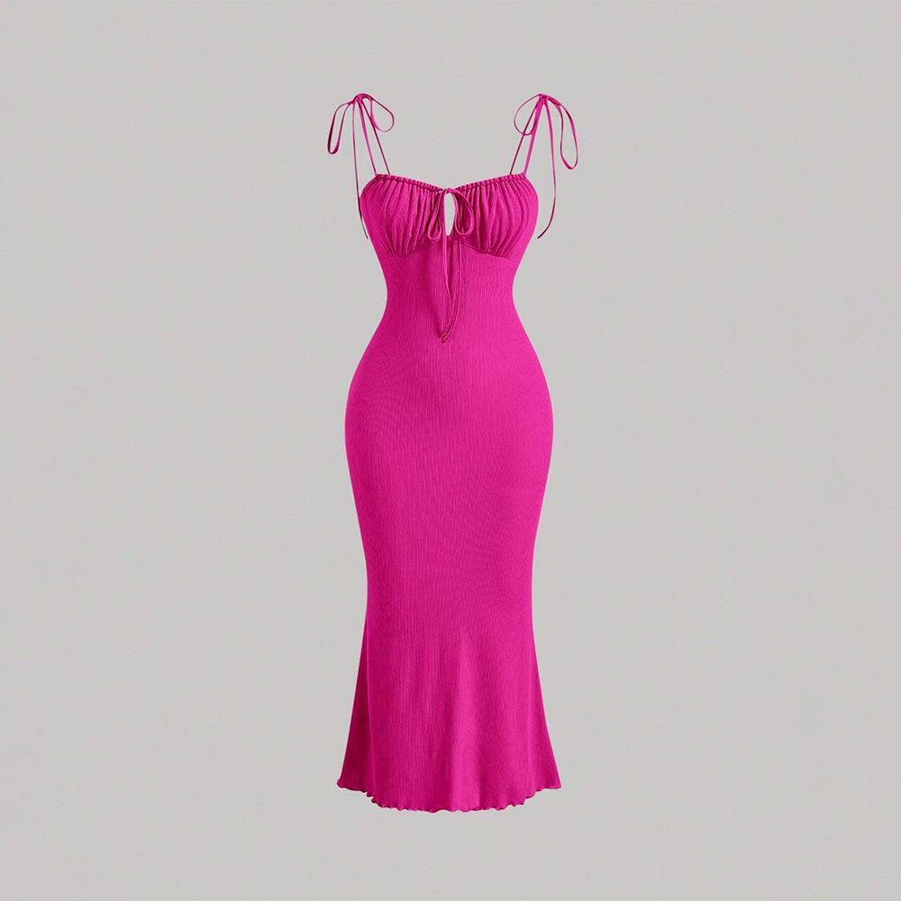 Новый стиль Ins, 2025 европейский и американский, Сексуальная завязка на шнурке, Приталенный крой, Облегающая бедра юбка-годе, Фасон на бретелях, Платье