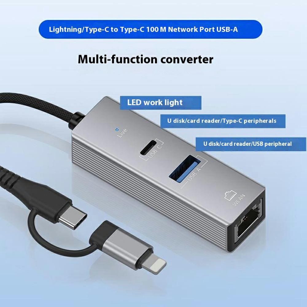 8Pin/Type-C к USB-A USB-C Сетевой адаптер RJ45 Алюминиевый сплав 100 Мбит/с Ethernet-разъем
