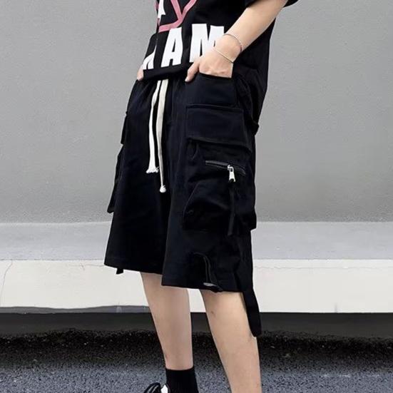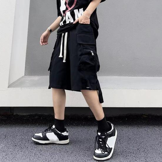 Универсальный стиль: Дополните свой повседневный гардероб этими мужскими шортами-карго из высококачественного полиэфирного волокна.. Однотонный цвет и дизайн с карманами создают простой, но стильный образ, который легко сочетается со свободными футболками или топами с короткими рукавами и капюшоном.