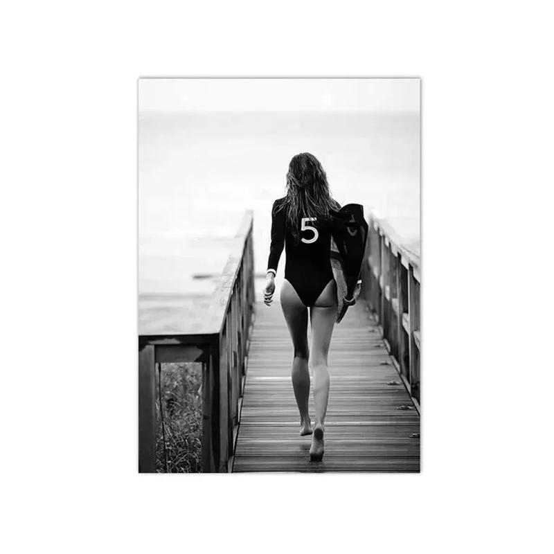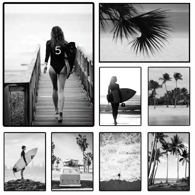 Beach Camper Van Surfing Ocean Landscape Wall Art Palm Tree Surfboard Canvas Painting Home Room Decor Poster Prints