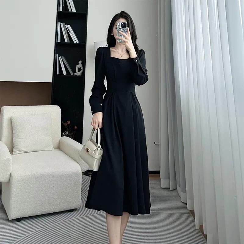 Весна Осень Женские Платья High Street с пуговицами в стиле пэчворк Элегантное Винтажное Платье Женское Однотонное Платье с Квадратным Воротником Длинным Рукавом И Квадратным Вырезом