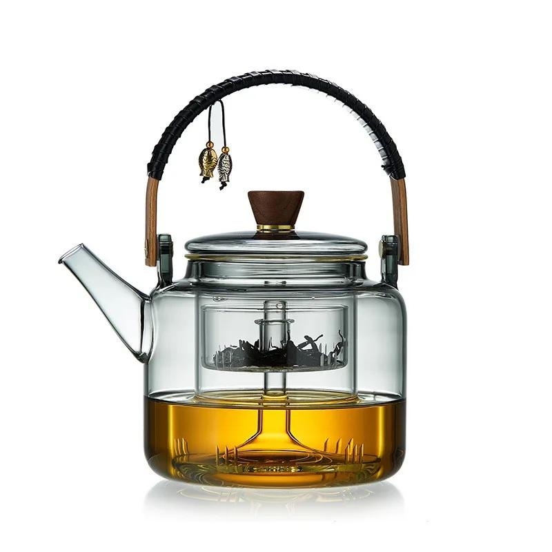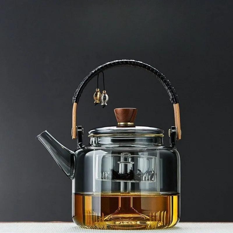 Заварочный чайник из высокоборосиликатного стекла 1200 мл, бытовой термостойкий чайник большой емкости с фильтром-вкладышем