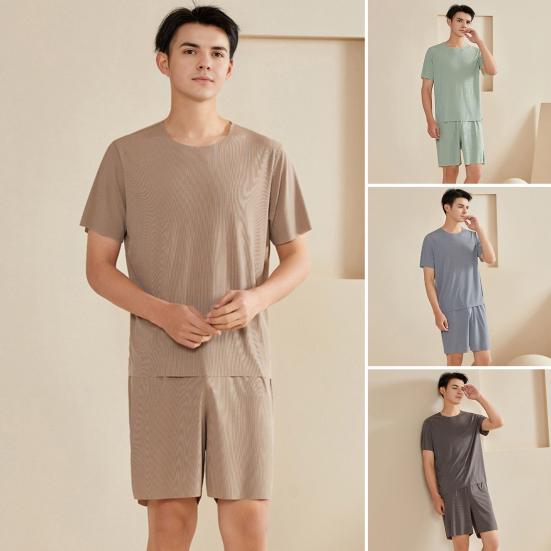 дизайн: Этот мужской домашний костюм отличается простым, но модным дизайном, излучая сдержанную элегантность, которая одновременно универсальна и стильна.. Свободный крой ансамбля обеспечивает комфорт в течение всего дня без ущерба для стиля.