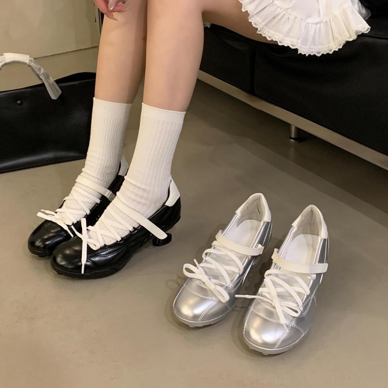 Балетная серия Interstellar Серебряные балетки на шнуровке с бантом, спортивные балетки Kitten и обувь Dexun