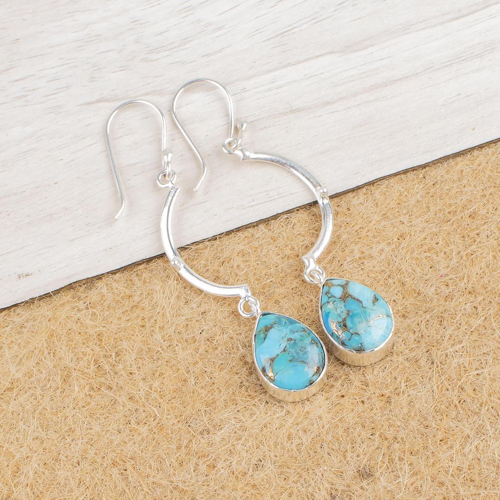 Украшения из серебра с драгоценным камнем голубой медной бирюзы, роскошные серьги ручной работы, серьги из стерлингового серебра 925 пробы для свадебного подарка