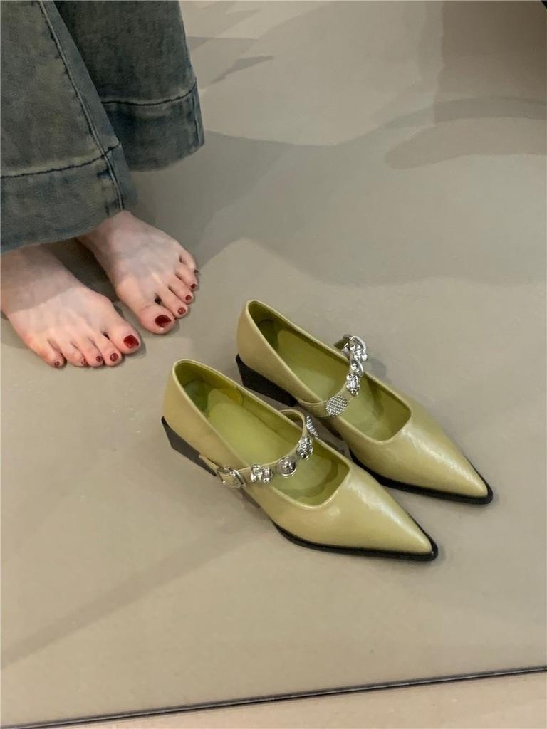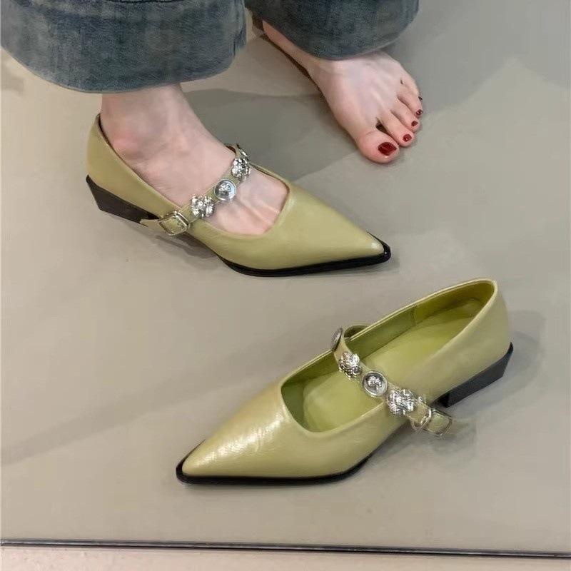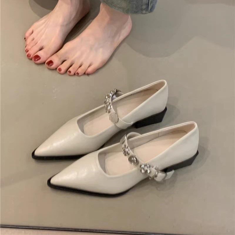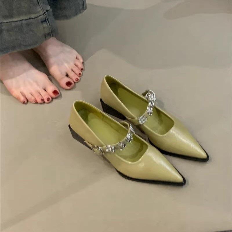 Темпераментные туфли Мэри Джейн на толстом каблуке 2025 новые французские элегантные с металлической пряжкой остроносые одинарные туфли для офиса женские