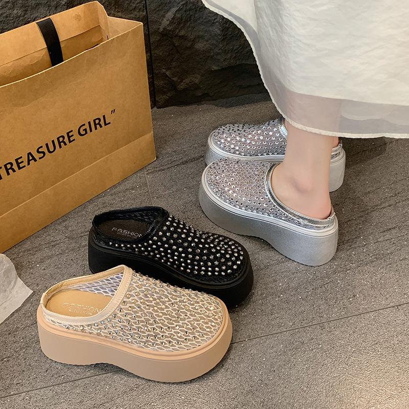 2025 лето новые толстоподошвенные тапочки с закрытым носком женские для улицы модные и универсальные повседневные ленивые тапочки-сандалии на полступни