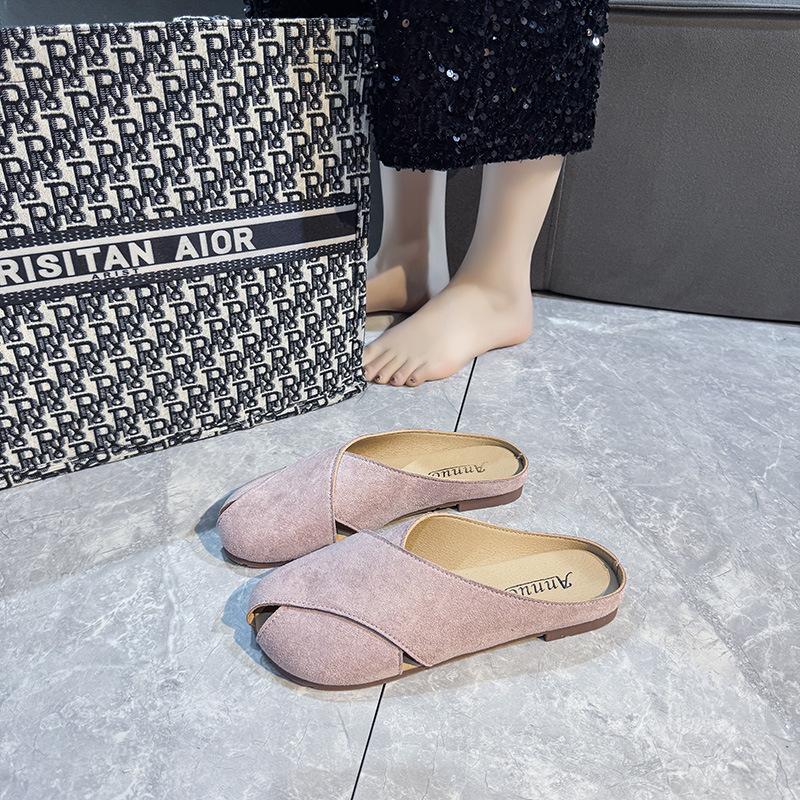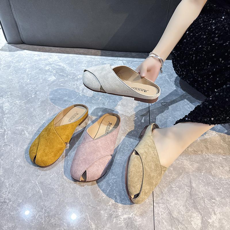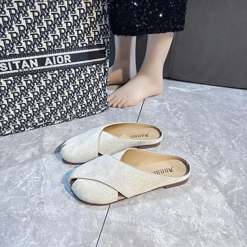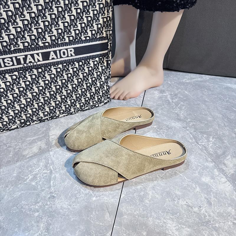 Баотоу полутапочки женские для улицы 2025 новая летняя обувь на плоской подошве, ленивые сандалии на одной педали с мягкой подошвой