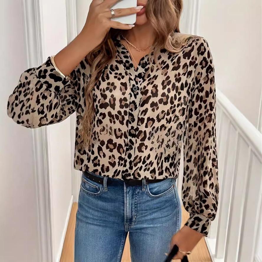 YYFS Женские модные повседневные весенне-осенние блузки и рубашки с v-образным вырезом и длинными рукавами с леопардовым принтом